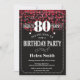 Red Glitter 80th Birthday Invitation