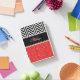 GIRLY MODERN, RED GLITTER (PRINTED EFFECT) WITH BLACK AND WHITE CHEVRON PATTERN, MONOGRAMMED WITH YOUR NAME, YOUR INITIAL OR LETTER OF THE ALPHABET TO CREATE A MONOGRAM ON A BLACK STRIPE OR BAND WITH A BORDER OF PRINTED WHITE DIAMONDS. TRENDY, CHIC COOL CUTE DESIGN FOR HER, THE TRENDSETTER, THE FASHIONISTA