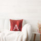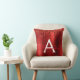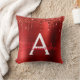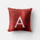 Red Glitter Brushed Metal Monogram Name Throw Pillow