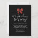 Red Glitter Coquette Bow Lets Party Christmas Invitation