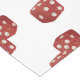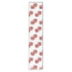 This table runner features a sophisticated and glamorous game night or casino theme. An image of red glitter dice is tiled across a white background.