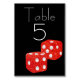 This glamorous custom table number card features a red and black casino design. An image of large, red glitter dice is printed across the center over a black background. You can personalize the table card to include your own custom name or text.