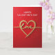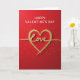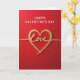 This greeting card opens with a deep red background that sets a warm, romantic tone. At the center sits a large heart filled with sparkling gold glitter, drawing your eye right away. Inside the heart, the word “Love” appears in matching gold lettering with smooth, flowing lines. Near the top, “Happy Valentine’s Day” is written in bright white letters that stand out clearly against the rich red. Small gold glitter dots are scattered around the heart like tiny bursts of confetti, adding shine and movement. A soft shadow beneath the gold details gives the heart and lettering a gently raised look. With its bold colors and glowing accents, this card feels sweet and timeless, making it a beautiful choice for sharing love with someone special 💕