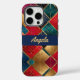 Red, gold, midnight blue, and teal combine to make a rich-looking iPhone case. Beautiful and stylish. Personalize with your name in a midnight blue band in the middle.