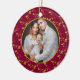 Dark red and gold holly festive patterned holiday photo ornament. Personalize with your own photo. Other matching items are available and can be created on request. © Original design by www.mylittleeden.com on Zazzle.