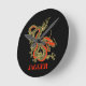 A fierce black Chinese dragon outlined in gold decorates this wall clock. Red accents highlight the dragon's jaw, head and spine. Your name is written in bold gold below.
