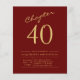 Create Unforgettable Memories with Personalized 40th Birthday Invitations. Celebrate your 40th birthday in style with these custom budget invites! This red-and-gold script design is perfect for adding your own personalized message. Crafted with care and attention to detail, these invitations are sure to bring the right touch of elegance to your big day. Whether you're looking for a simple way to invite loved ones or a way to add a special touch to the festivities, these personalized 40th birthday invitations are sure to please.LOW BUDGET INVITATION FLYERS. *** PLEASE NOTE this budget option is a flyer (no envelopes included) hence the low price - The SATIN option is the thicker choice. The design has an additional text template on the rear (yes, added value!) for extra details such as RSVP, directions etc.