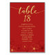 Wedding seating chart card in red and gold cherry blossoms design.
