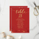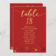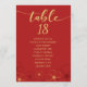 Wedding seating chart card in red and gold cherry blossoms design.