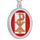 The Chi Rho is one of the earliest forms of christogram used by Christians. It is formed by superimposing the first two letters in the Greek spelling of the word Christ ( Greek : "Χριστός" ), chi = ch and rho = r, in such a way to produce the monogram. Although not technically a cross, the Chi Rho invokes the crucifixion of Jesus as well as symbolizing his status as the Christ.