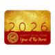 Modern design with golden textured paper (printed image) with vertical golden Chinese wishes + large 2026 in red + small Horse paper cut-out with yellow texts HAPPY NEW YEAR and Year of the Horse onto a red background. Design on flexible photo magnet with red background. You can easily change year by clicking the customize button. Matching greeting card, holiday postcard, sticker and more soon... Perfect for a timeless and modern Chinese New Year of the Horse 2026.