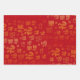 Red Gold Chinese New Year Fu 福 Good Fortune Wrapping Paper Sheets, in three different patterns.