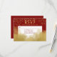 An elegant red and gold RSVP card featuring gold confetti dust and smoky gold accent at the bottom.