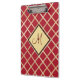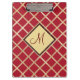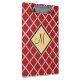 Red Gold Diamond Geometric Pattern Monogram Clipboard
