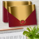 Red and gold invitation and announcement size envelope. Choose from red or gold interior - both are included and simply make your selection as you customize for your order.