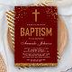 Red Gold Faux Glitter Cross Royal Baptism Invitation