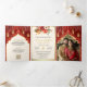 Red Gold Floral Curtain Indian Hindu Wedding Tri-Fold Invitation