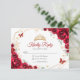 Red, gold and white floral Quinceanera RSVP reply card. Features, script font, gold butterflies, watercolor roses and tiara. Perfect for an elegant princess style glam celebration. Personalize with your own details.