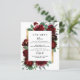 Design features watercolor peony and rose floral elements in shades of red and burgundy over eucalyptus botanical greenery. Template also features a printed gold colored box for an added elegant layout. The typography displays a modern layout with black text. View the collection link on this page to find matching products within the wedding set.