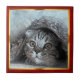 Red & Gold Framed Abstract Cat Print Ceramic Tile