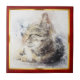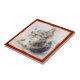 Red & Gold Framed Abstract Cat Print Ceramic Tile