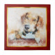 Red & Gold Framed Abstract Dog Print Ceramic Tile
