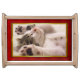 This design features a red frame with a gold band and a picture of some beautiful kittens in the centre. More designs are also available in my store.