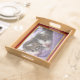 This Create With Photos tray exceeded my expectations. I had ordered an acrylic tray previously that I didn't like, but this one is excellent quality. It's sturdy and has some nice weight to it. The tray surface has a glossy finish that seems like it will stand up to real use. I only wish there was a white version of this tray. The printing is wonderfully clear and crisp. I also love the high gloss finish.