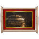 This design features a red frame with a gold band and a picture scene depicting a railway station in the early morning. Lose yourself in the atmosphere and ambience and admire the architecture.