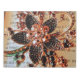 Vivid red jewels on a gold pin with a print background notepad crafting papers