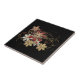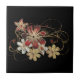 Red Gold Gemstone Flowers Black Ceramic Tile