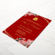 Red gold geometric floral wreath Chinese wedding Foil Invitation