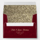 Simple, elegant, modern faux glitter red burgundy 5x7 envelope for winter holidays greeting cards or wedding invitations with luxury gold glitter inside, return address and adorable heart monogram at the top flap.