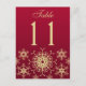 red, Gold Glitter Snowflakes Table Number Card