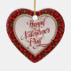 customizable text heart shape ceramic ornament : Red and gold pattern with centre space for your own text on one side of this hanging ornament. Ornament idea : Make your own personalized Door hanger / room name : hang on short cord in middle top of your door. Suitable also as a personalized gift for someone special : Valentine day, Birthday or just a special loving reminder.