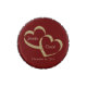 Pretty wedding favor candy tin, with graphics of two gold tone glitter looking hearts against a deep red background. Gold tone colored text in the hearts and below the hearts, is ready to personalize for your wedding. Chose the candy tin style and the candy flavor you prefer as filling.