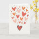 This Valentine's Day card shows a large red heart near the bottom, with many smaller hearts floating upward like they’re rising into the air. The smaller hearts come in reds, coral, orange, and light pink, and they feel cheerful and sweet 💕. Some hearts are solid color, while others have gold dots or fine gold patterns that add a little sparkle. Tiny black dots are scattered around the hearts, giving the scene extra movement and contrast. The background is a very light, soft color, so the hearts stand out clearly and the whole look feels calm and warm ❤️. There isn’t any written message shown on the front, so the design does all the talking on its own. Share it with someone special to help pass along a little extra love on Valentine’s Day 😘.