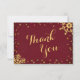 A modern style with colorful bokeh dots, gold stars and snowflakes and swirl watermarks. The background color is a festive cranberry red. The front has a calligraphy hand written style font that says Thank You. Personalize this Christmas holiday flat card for your thank you notes. They are also great to say thanks and show appreciation after a bridal shower, wedding, birthday.