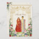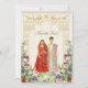 A beautiful faceless digital illustration of an Indian couple getting married with bright hues of red and gold and elegant flowers at the border, includes personalization .