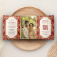 Red Gold Lace QR Code Photo Indian Wedding Tri-Fold Invitation
