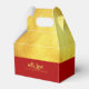 Original party favor box (gable model) for The Chinese New year of the Pig 2019. Golden and transparent background with red Chinese papercut of a pig into a golden circle + customizable texts (in front) and Message + family name (in back). You can easily change texts (font, color, size and position) and background color (here dark red) by clicking the customize button. Matching paper napkin, craft products, invitations, greeting card and more...Perfect for Chinese New year of the Pig 2019.--- "The Pig (豬) is the twelfth and the last sign of the Earthly Branches (亥). In the continuous Sexagenary cycle, every twelfth year corresponds to Hai, and is commonly called "the Year of the Pig" (豬年). There are five types of Pigs, named after the Chinese elements. In order, they are: Metal, Water, Wood, Fire, and Earth.