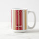 Add a chic and cheerful flair to your Christmas celebrations with this stunning pinstriped pattern. Featuring thin, vertical stripes that vary in width and spacing to create a sophisticated Christmas design. In traditional red, gold, and white, this coffee mug design brings a festive and elegant look. The vibrant red stripes capture the joyful spirit of the season, while the shimmering gold adds a luxurious touch that has a timeless appeal. Personalize with your monogram and name using the provided template. Search ID1009 to see other products and patterns in this color scheme.