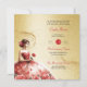 Red Gold Quinceanera Dress Ceremony Reception Invitation