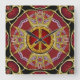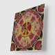 Custom Art Wall Clock : Unique and style design in satin red and metallic goldwith a gold peace symbol in the centre.