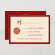A gold double happiness symbol on a shimmering red background. RSVP Chinese Wedding Card. At the backside is a scannable qr code for your wedding website.