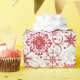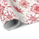 A beautiful red and white snowflake pattern is displayed on a white background in this image. The pattern features intricate red snowflakes with white or gold accents, creating a vibrant and eye-catching design. The colors of red and white complement each other perfectly, giving a classic and elegant look to the fabric. The pattern could be described as a mix of floral and snowflake elements, with the red and white colors reminiscent of the holiday season. This fabric would be perfect for creating stunning garments, home decor items, or any craft project that requires a touch of sophistication and charm.