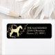 This pretty return address label features a gold silhouette Airedale Terrier image in front of a swirl of gold stars. The image is placed on a dramatic black background. Your custom text is in matching pale gold at the right of the image.