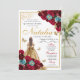 Red Gold Teal Floral Quinceanera Birthday Invitation