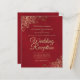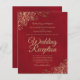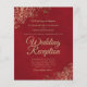 These affordable, budget friendly wedding reception invitations are the perfect choice for class, style, and beauty on a budget. Designed for guests who are invited to the reception but not the ceremony, they feature a marbled crimson red colored background with ornate golden faux foil frills in the corners. The typography includes fancy gold script lettering for a style that is at once simple and elegant. Wonderful way to invite your friends and family to share in your joy on your special day without breaking the bank.