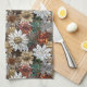 Red Gold White Flowers Kitchen Towel